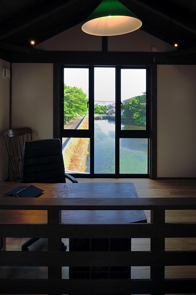 元々座敷で使用していた障子のデザインで ステンドグラスを作りました。